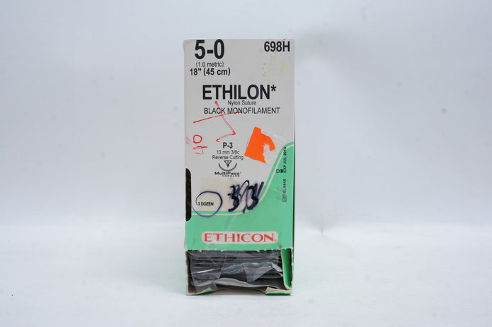 - Ethicon 698H 5-0 ETHILON, P-3, 19mm 3/8c Reverse Cutting, 18inch (x) - Box of 36
