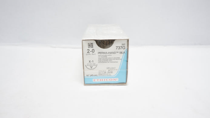 - Ethicon 737G 2-0 PERMA-HAND SILK, X-1, 22mm 1/2c Reverse Cutting, 18in. (x) ~ Box of 12
