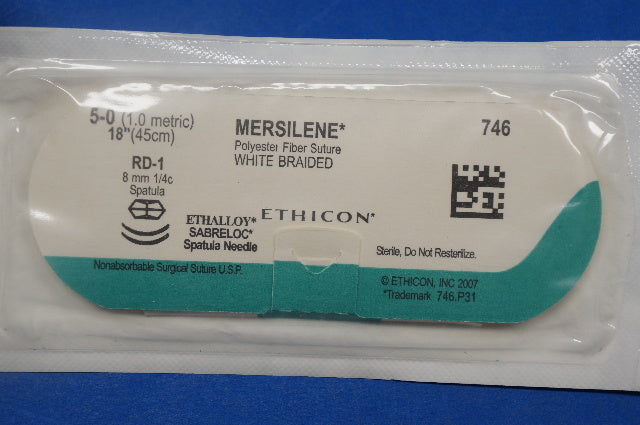 Ethicon 746 5-0 MERSILENE, RD-1 8mm 1/4c Spatula, White Braided, 18