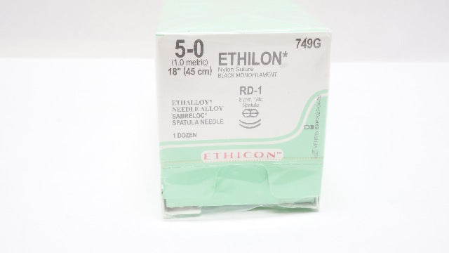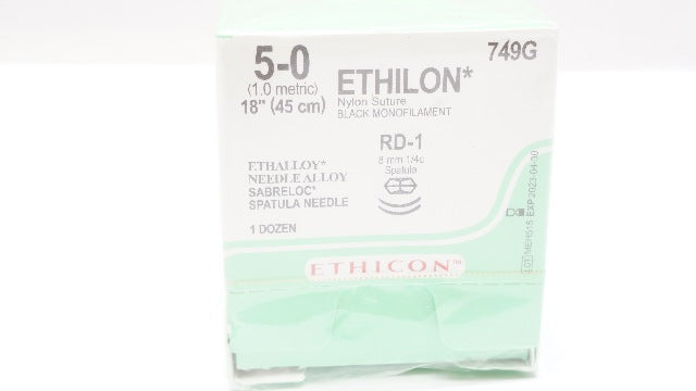 Ethicon 749G 5-0 Ethilon Nylon Suture Black Monofilament RD-1 8 mm 1/4c Spatula 18inch
