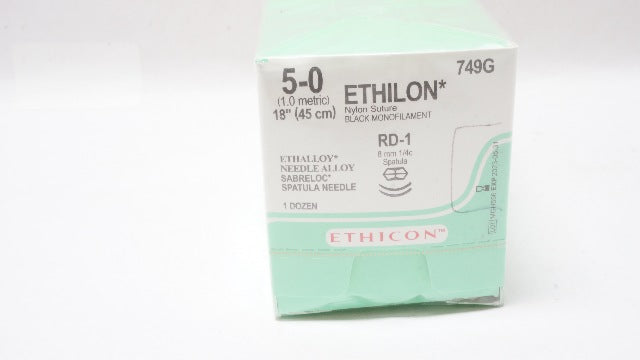Ethicon 749G 6-0 Ethilon Nylon Stre RD-1 8 mm 1/4c Spatula 18In