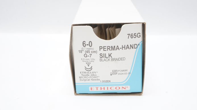 - Ethicon 765G 6-0 Perma-Hand Silk Black 18inch Stre, G-7 8.0mm (x) - Box of 12