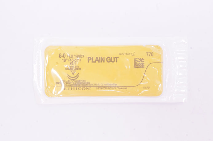 Ethicon 770 6-0 Plain Gut G-1 11mm 3/8c Reverse Cutting 18inch (x)