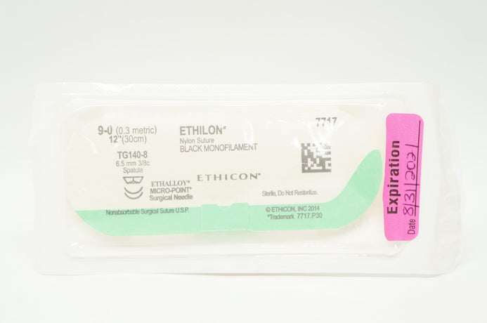 Ethicon 7717 9-0 ETHILON Nylon Stre TG140-8, 6.5mm 3/8c Spatula, 12inch (x)