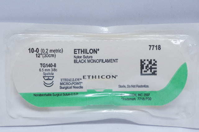 Ethicon 7718 10-0 ETHILON, TG140-8, 6.5mm 3/8c Spatula, 12inch (x)
