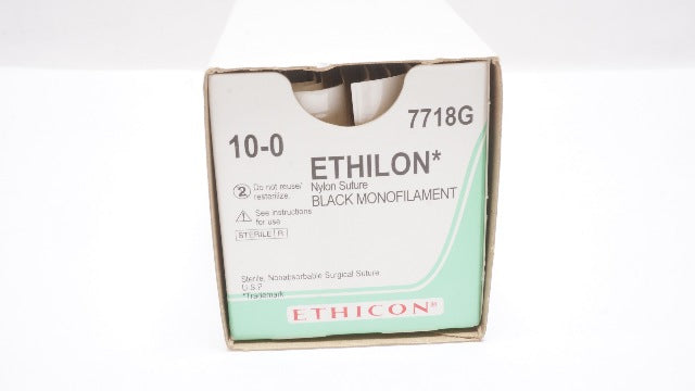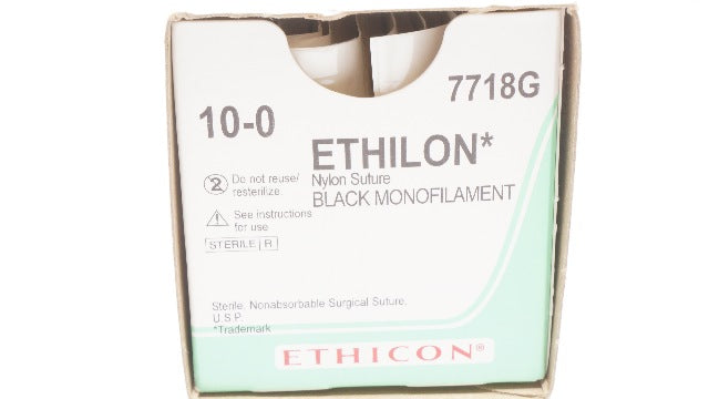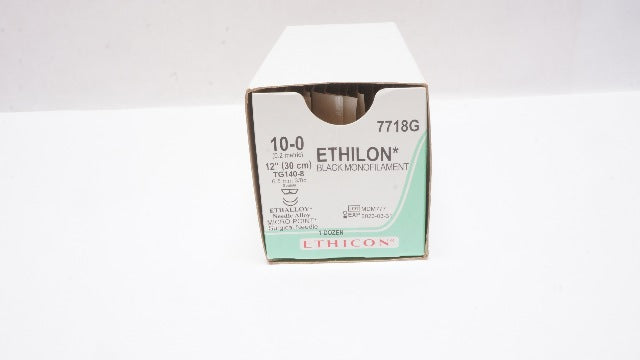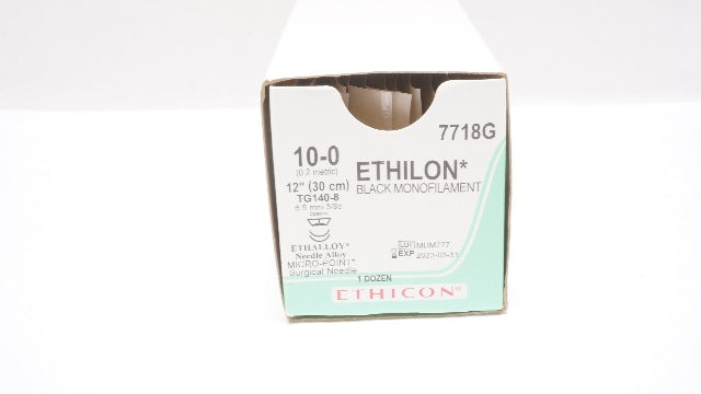 - Ethicon 7718G 10-0 Ethilon TG140-8 6.5mm 3/8c Spatula 12In - Box of 12 (x)