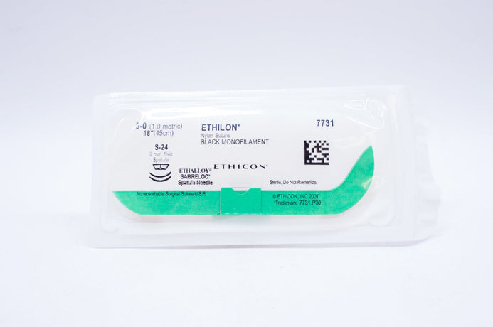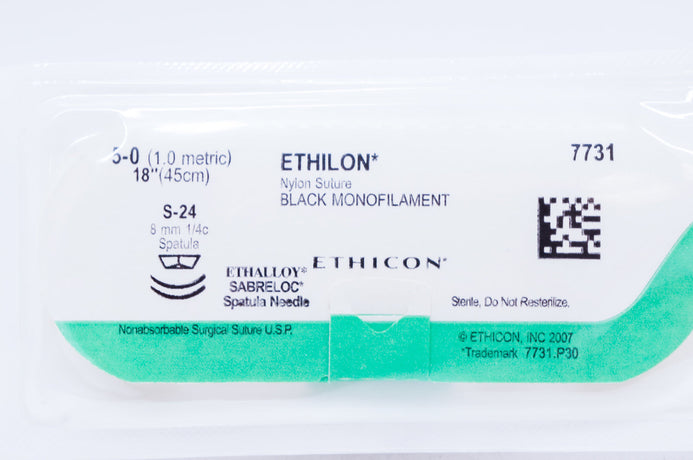 Ethicon 7731 5-0 ETHILON, S-24, 8mm 1/4c Spatula, 18inch
