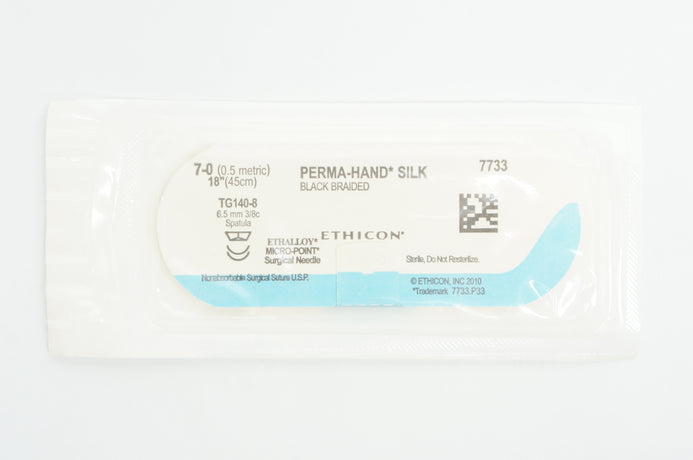 Ethicon 7733 7-0 PERMA-HAND SILK TG140-8, 6.5mm 3/8c Spatula, 18inch (x)