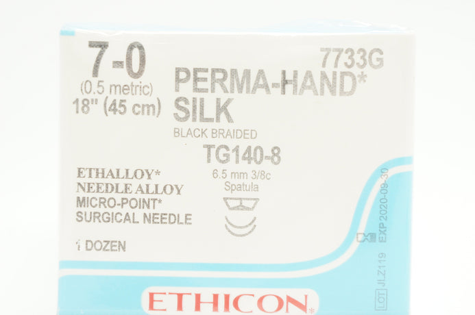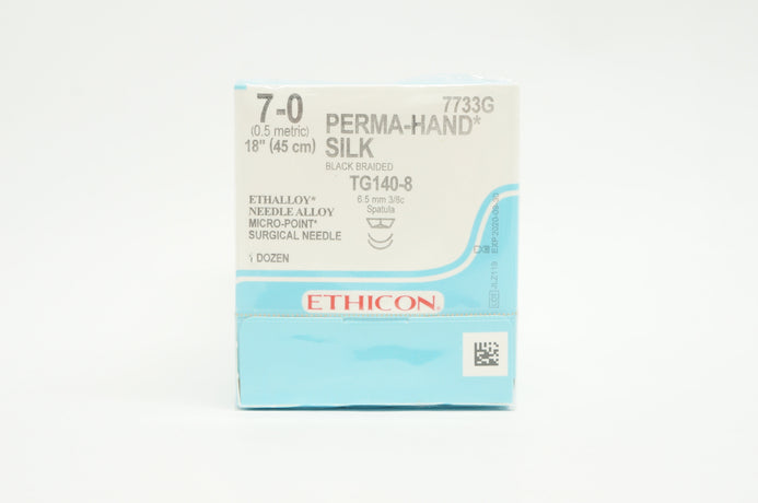 - Ethicon 7733G 7-0 PERMA-HAND TG140-8, 6.5mm 3/8c Spatula,18in - Box of 12 (x)