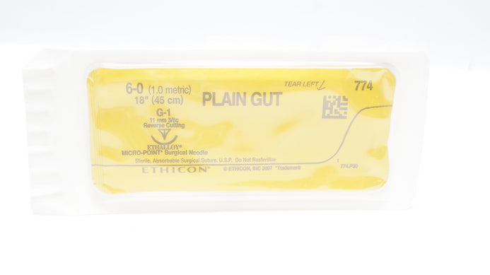 Ethicon 774 6-0 Plain Gut Surgical Suture G-1 11mm 3/8c, Reverse Cutting 18inch