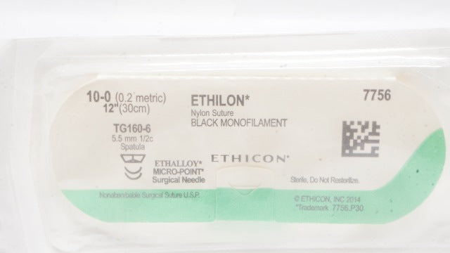 Ethicon 7756 10-0 Ethilon Nylon Stre TG160-6 5.5mm 1/2c Spatula 12In