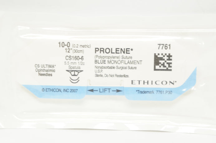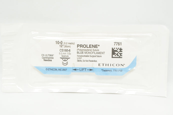 Ethicon 7761 10-0 PROLENE Polypropylene Stre CS160-6, 5.5mm 1/2c Spatula 12inch