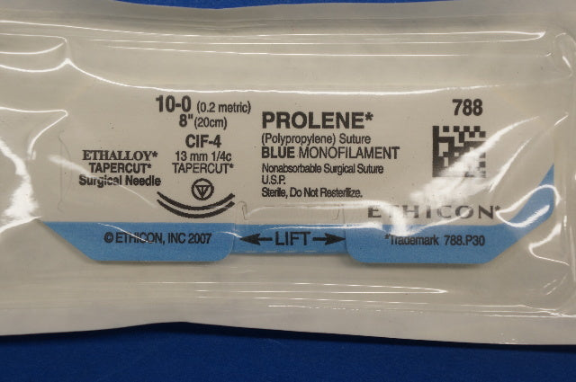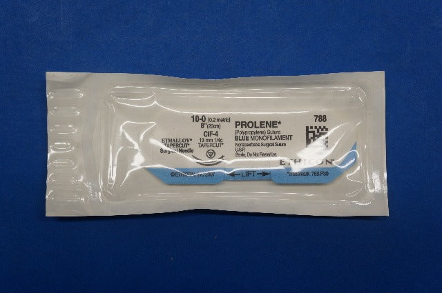 Ethicon 788 PROLENE, CIF-4 13mm 1/4c TAPERCUT, Blue Monofilament, 8", Size 10-0