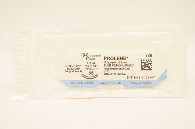 - Ethicon 788 10-0 PROLENE Polypropylene Stre GIF-4, 13mm 1/4c Tapercut, 8inch (x)
