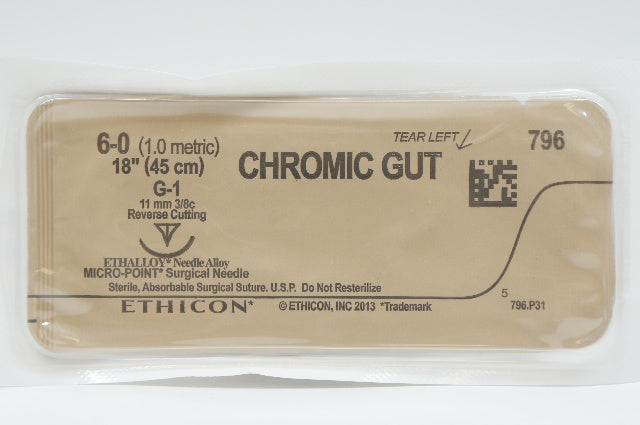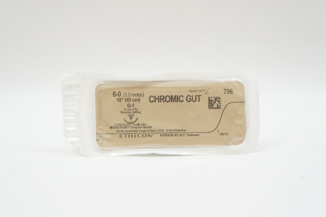 Ethicon 796 6-0 CHROMIC GUT, G-1, 11mm 3/8c Reverse Cutting, 18inch