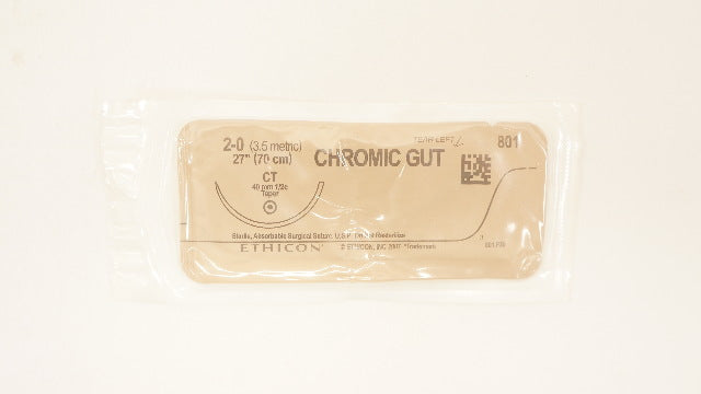 - Ethicon 801 2-0 Chromic Gut Sterile Surgical Stre CT 40mm 1/2c Taper 27 inch (x)