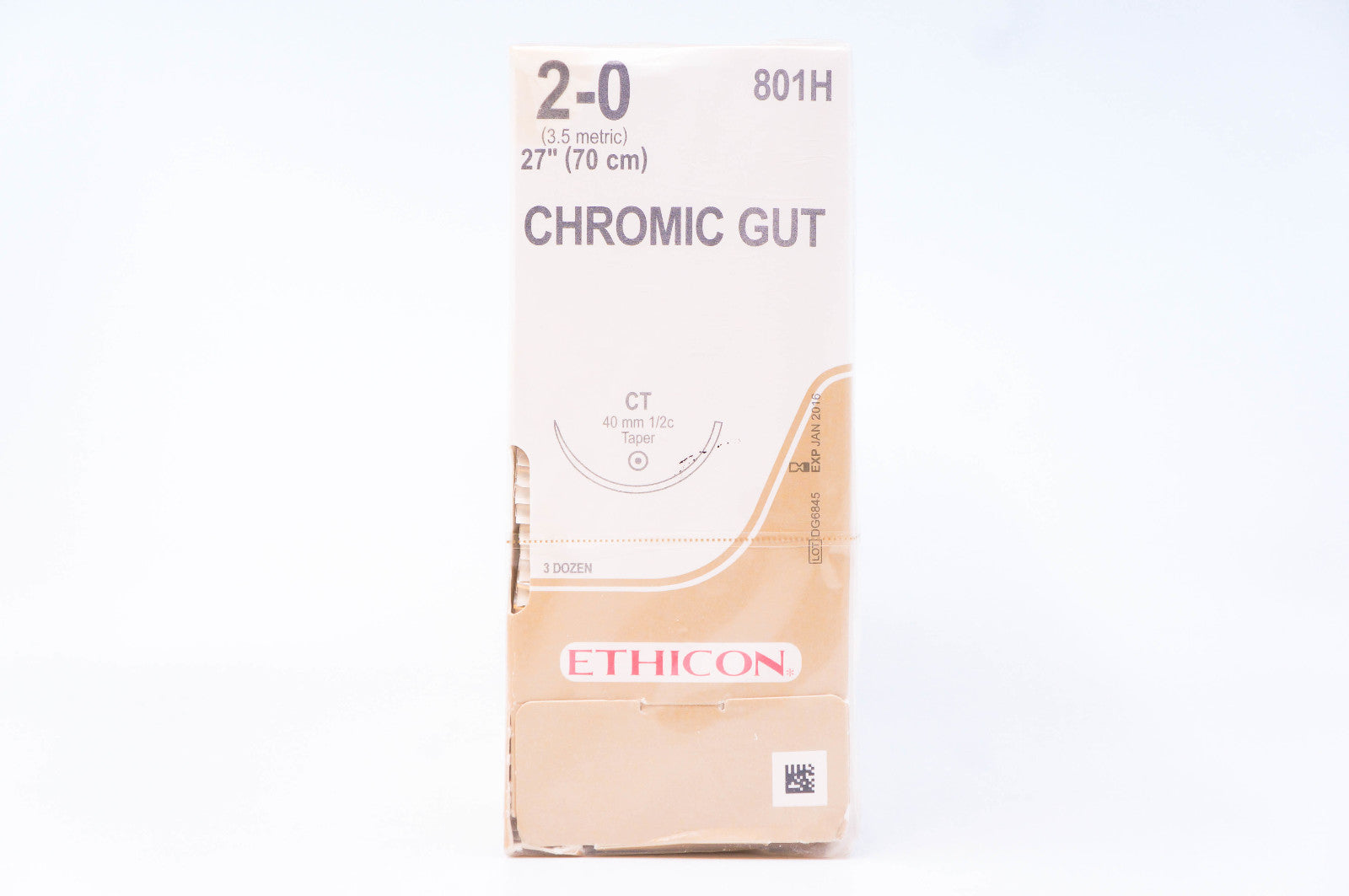 - Ethicon 801H 2-0 CHROMIC GUT, CT, 40mm 1/2c Taper, 27inch ~ Pack of 36 (x)