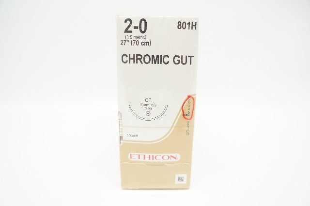 Ethicon 801H 2-0 CHROMIC GUT Stre CT 40mm 1/2c Taper, 27inch (x) - Box of 36