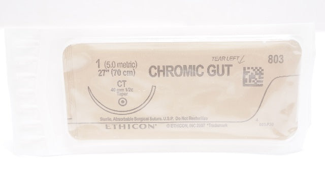 - Ethicon 803 1 CHROMIC GUT Surgical Stre CT 40mm 1/2c Taper, 27inch (x)