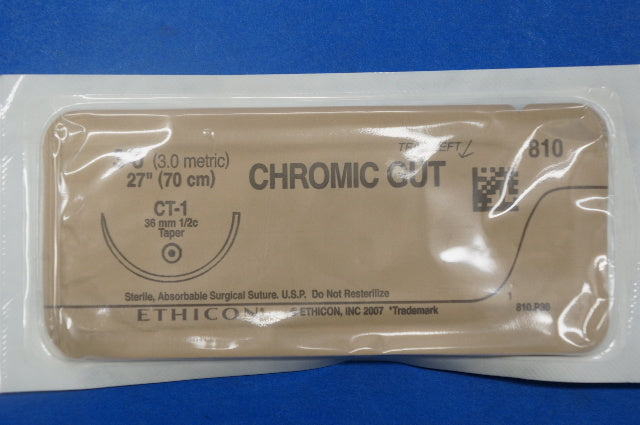 Ethicon 810 CHROMIC GUT, CT-1 36mm 1/2c Taper, 27", Size 3-0