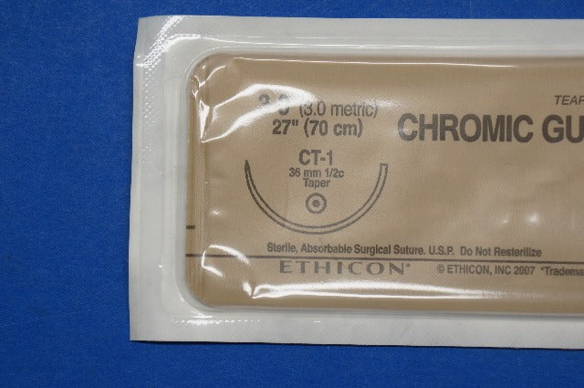 - Ethicon 810 CHROMIC GUT, CT-1 3mm 1/2c Taper, 27