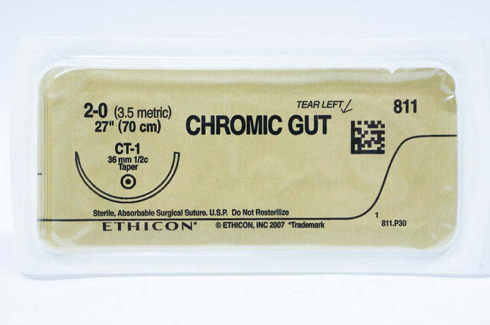- Ethicon 811 2-0 CHROMIC GUT, CT-1, 36mm 1/2c Taper, 27inch (x) - Lot of 108