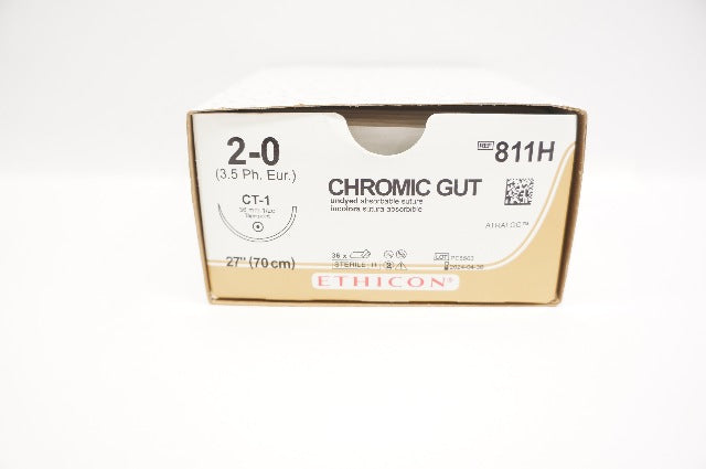 - Ethicon 811H 2-0 CHROMIC GUT Stre CT-1 36mm 1/2c Taperpoint 27inch - Box of 33