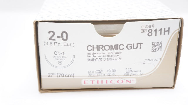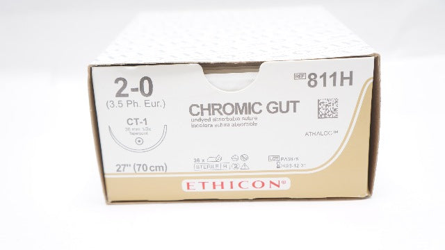 - Ethicon 811H 2-0 CHROMIC GUT Stre CT-1 36mm 1/2c Taperpoint 27inch x)- Box of 36