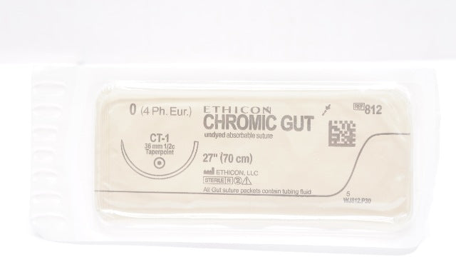 - Ethicon 812 0 CHROMIC GUT Undyed Stre CT-1 36mm 1/2c Taperpoint, 27inch