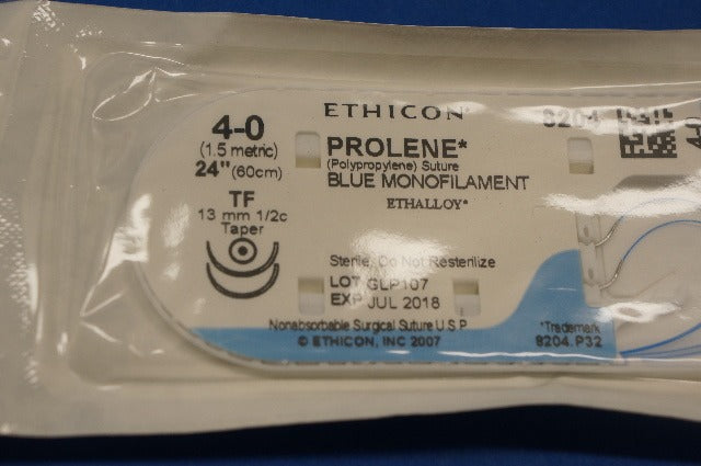 - Ethicon 8204 4-0 PROLENE, TF 13mm 1/2c Taper, Blue Monofilament, 24
