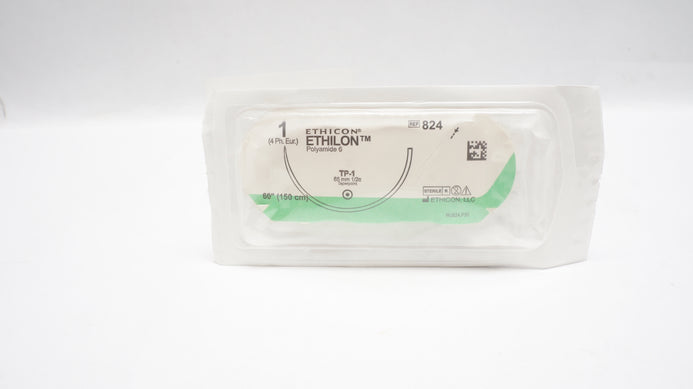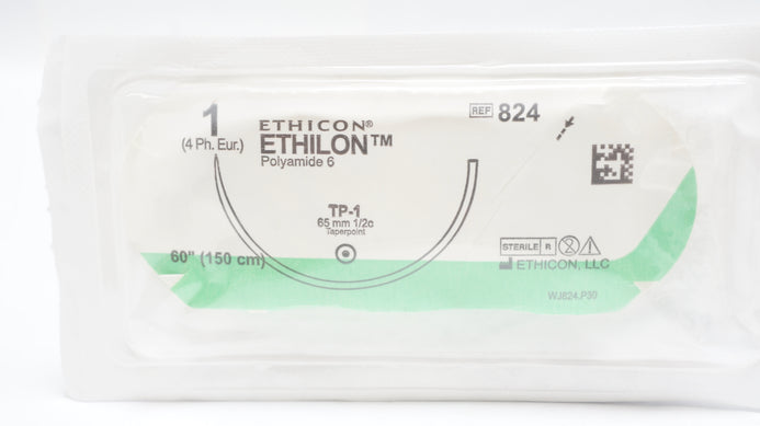 - Ethicon 824 1 Ethilon Black Monofilament Stre TP-1 65mm 1/2c Taperpoint 60inch