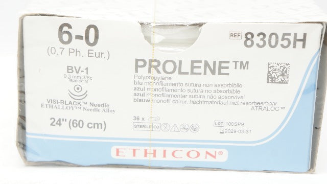 Ethicon 8305H 6-0 Prolene Stre, BV-1, 9.3 mm 3/8c Taper, 24in.