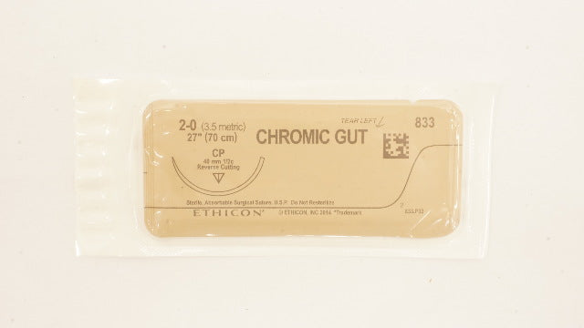 Ethicon 833 2-0 Chromic Gut Surgical Suture CP 40mm 1/2c Reverse Cutting 27 inch
