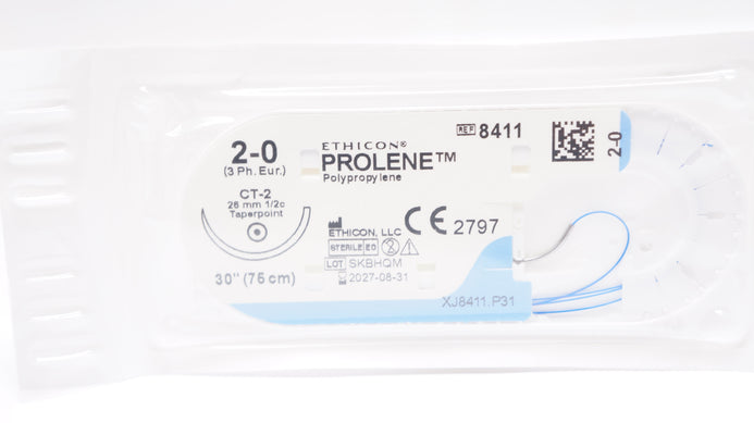 - Ethicon 8411 2-0 PROLENE Polypropylene Stre CT-2 26mm 1/2c Taperpoint, 30inch
