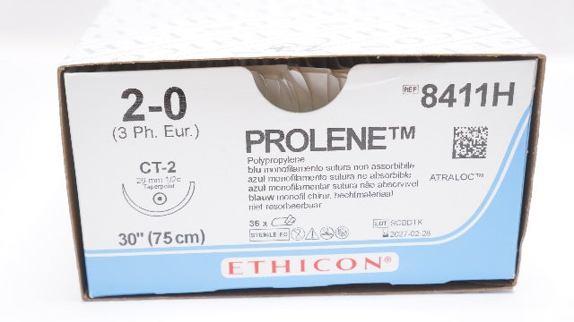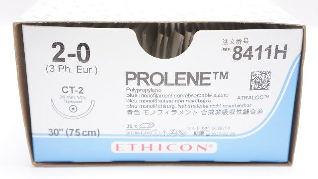 Ethicon 8411H 2-0 Prolene Stre CT-2 26mm 1/2c Taperpoint 30inch - Box of 27