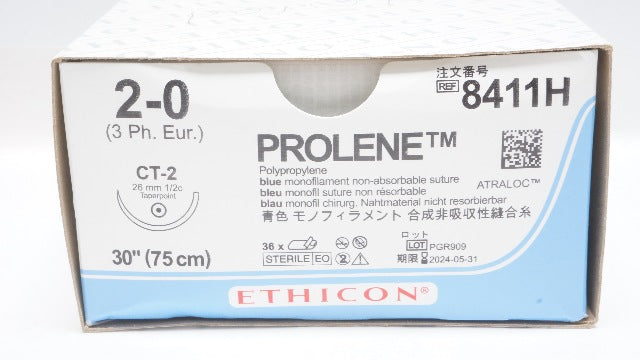 Ethicon 8411H 2-0 Prolene Stre CT-2 26mm 1/2c Taperpoint 30inch (x) - Box of 36