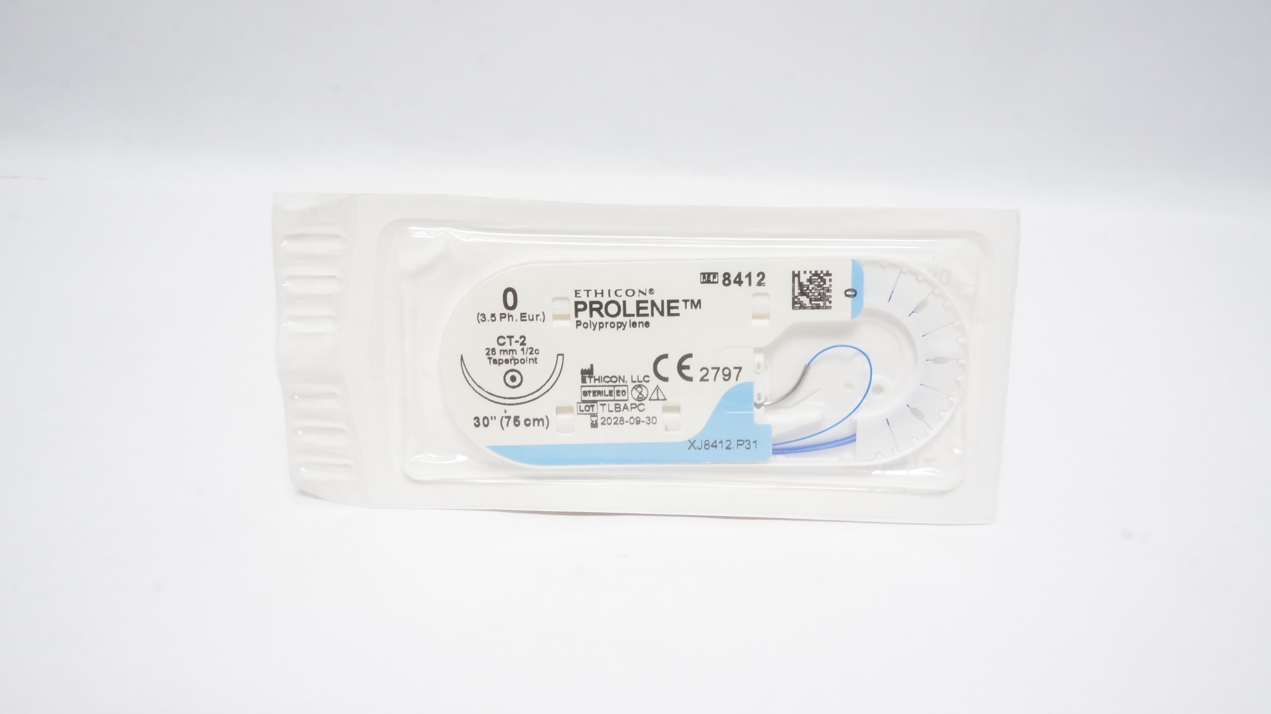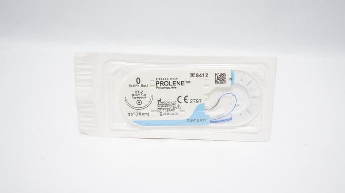 - Ethicon 8412 0 PROLENE Polypropylene Stre CT-2 26mm 1/2c Taperpoint 30 inch