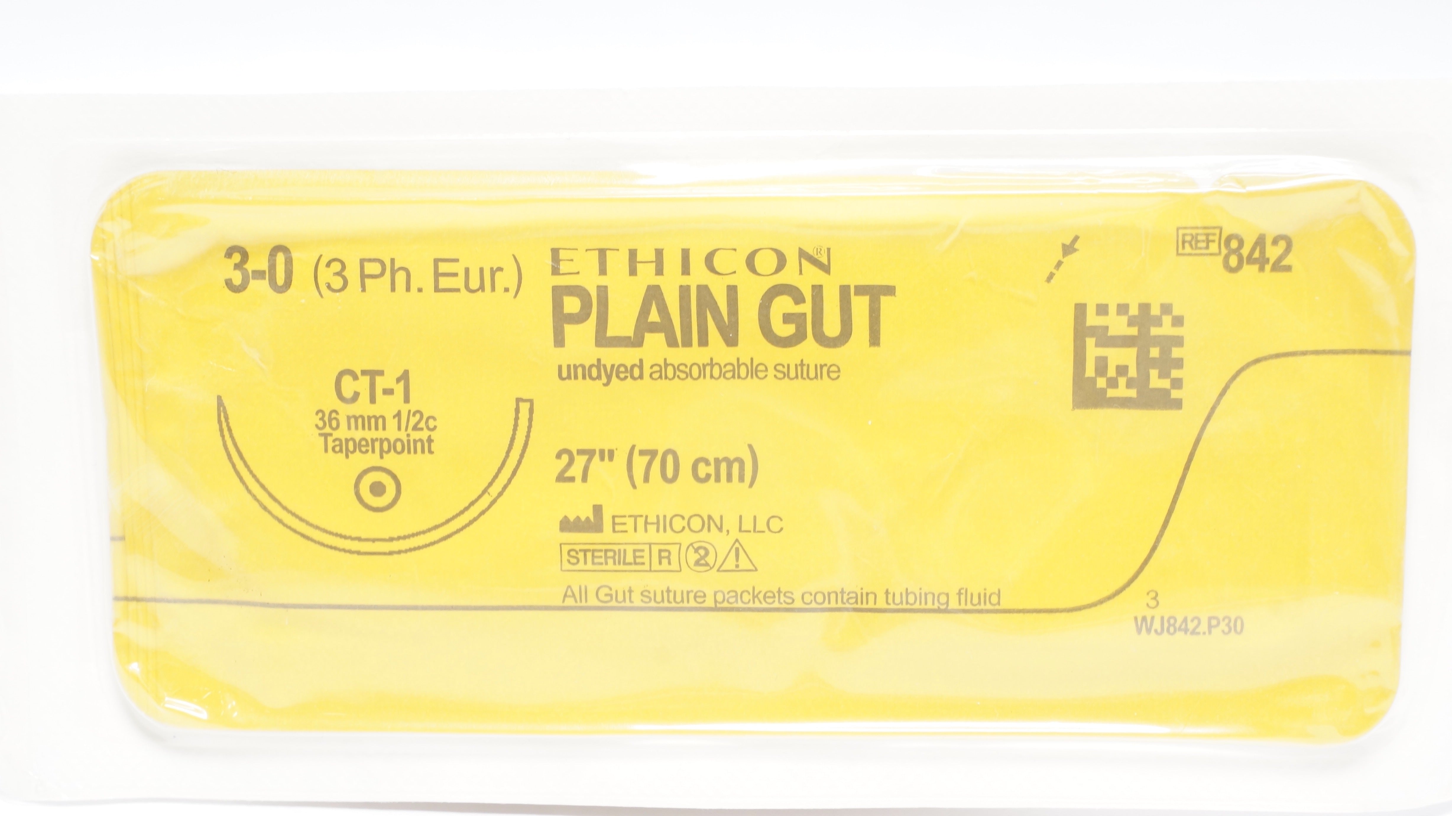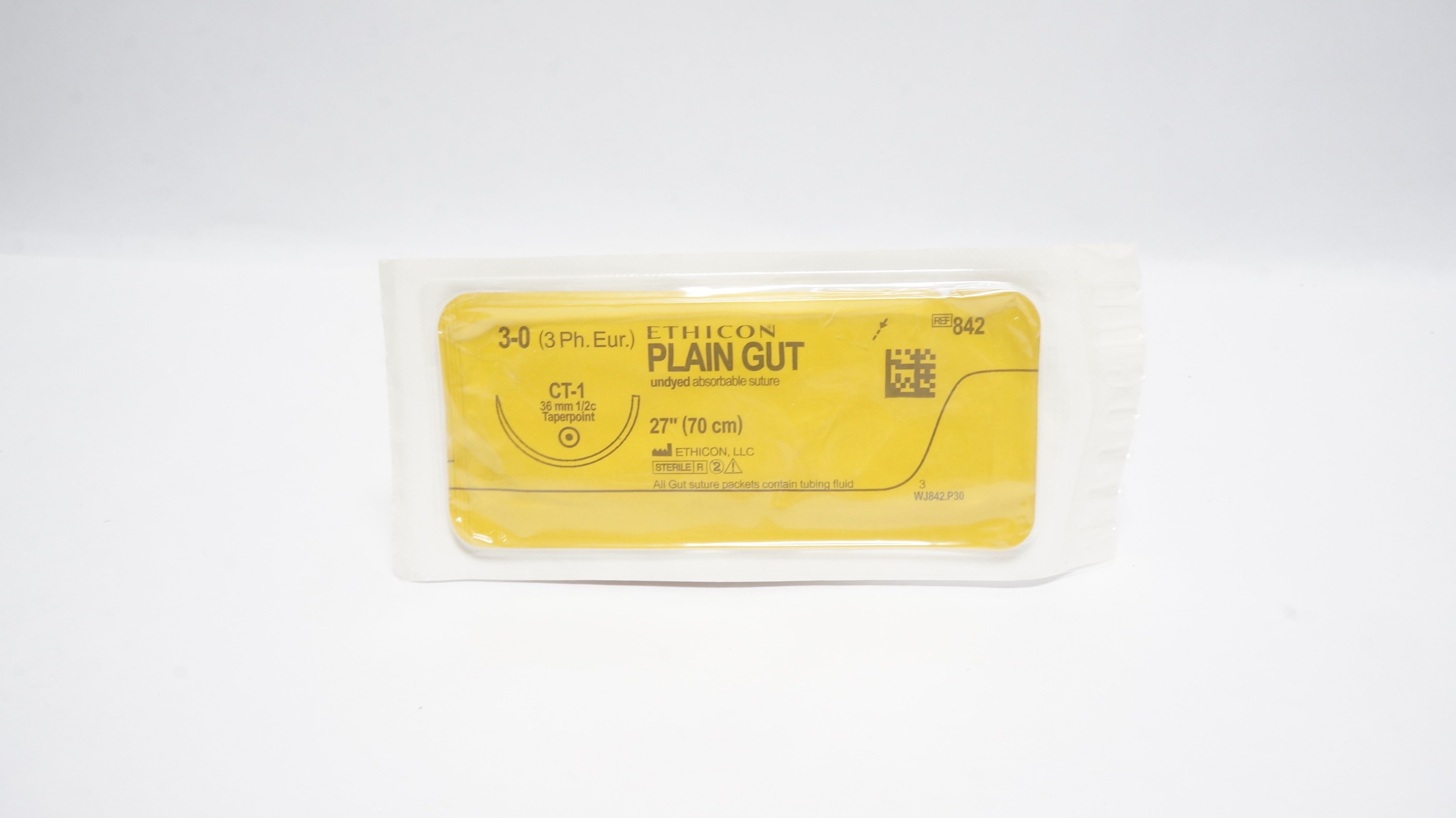 - Ethicon 842 Plain Gut 3-0 27inch CT-1 36mm 1/2c Taper