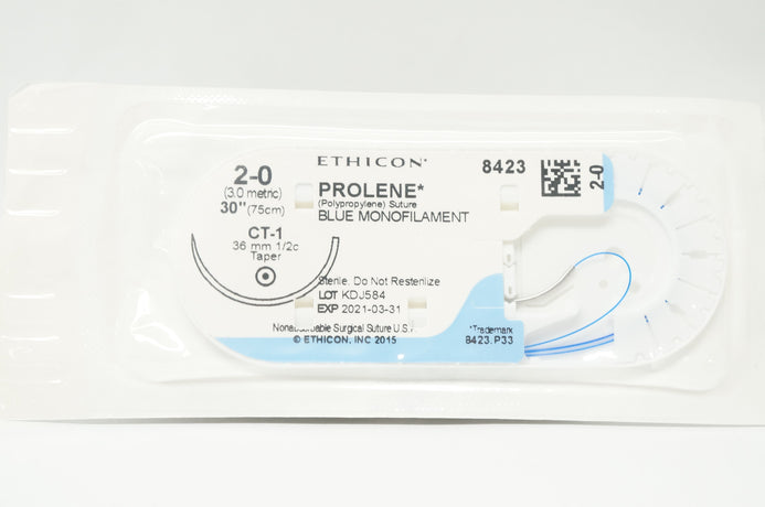- Ethicon 8423 2-0 PROLENE Polypropylene CT-1, 36mm 1/2c Taperpoint, 30inch (x)
