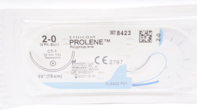 - Ethicon 8423 2-0 PROLENE Polypropylene Stre CT-1 36mm 1/2c Taperpoint 30inch