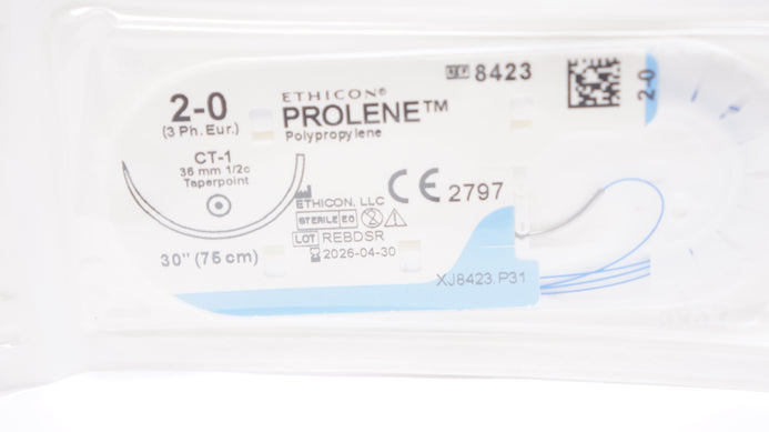 - Ethicon 8423 2-0 PROLENE Polypropylene Stre CT-1, 36mm 1/2c Taperpoint, 30inch