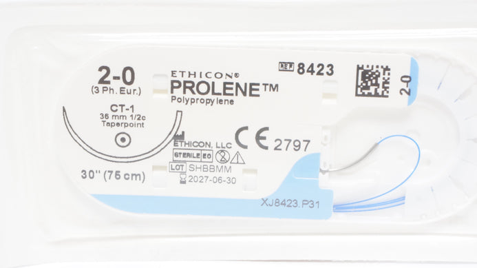 - Ethicon 8423 2-0 PROLENE Polypropylene Stre CT-1, 36mm 1/2c Taperpoint, 30inch