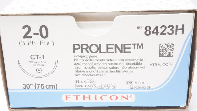Ethicon 8423H 2-0 PROLENE CT-1 36mm 1/2c Taperpoint 30inch - Box of 35