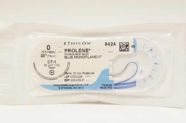 - Ethicon 8424 0 PROLENE, CT-1, 36mm 1/2c Taper, 30inch