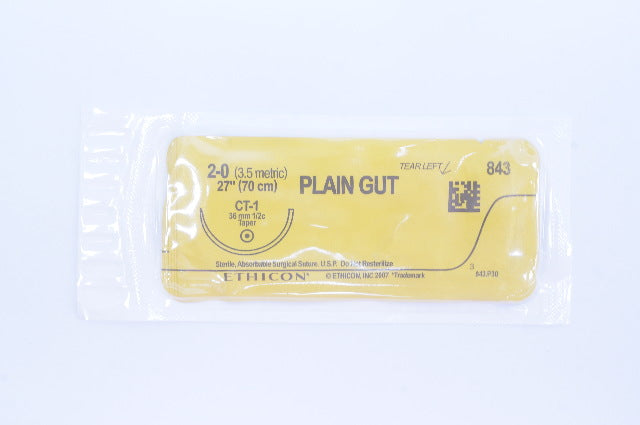 Ethicon 843 2-0 Plain Gut Sterile Absorbable Surgical Suture CT-1 36mm 1/2c Taper 27 inch