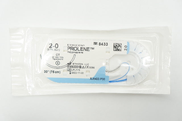 Ethicon 8433 2-0 PROLENE Polypropylene Suture Blue Monofilament CT 40mm 1/2c Taper, 30inch