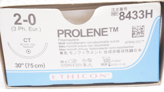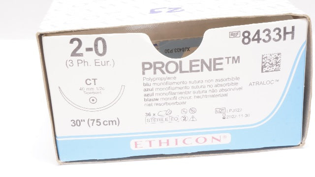 Ethicon 8433H 2-0 Prolene CT 40mm 1/2c 30inch