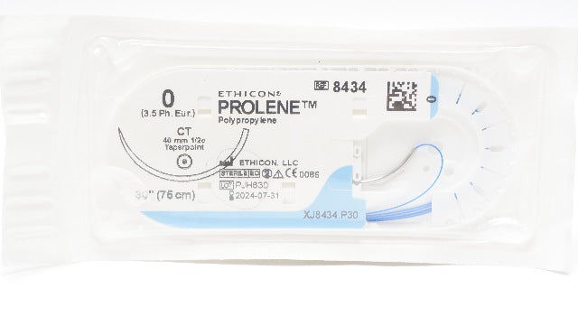 Ethicon 8434 0 PROLENE Polypropylene Suture Blue Monofilament CT 40mm 1/2c Taperpoint, 30inch