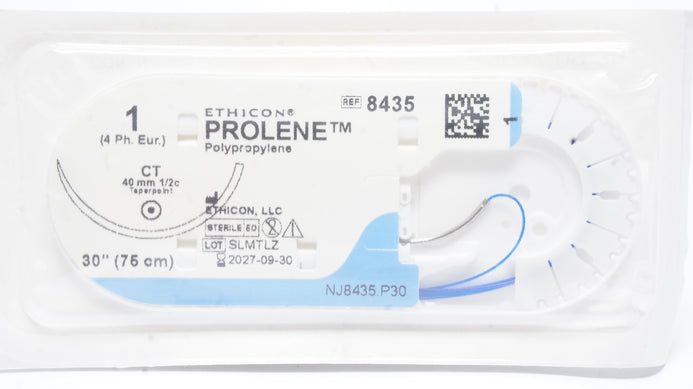 Ethicon 8435 1 Prolene Polypropylene Suture Blue Monofilament CT 40mm 1/2c Taperpoint 30 inch