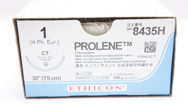 - Ethicon 8435H 1 Prolene Stre CT 40mm 1/2c Taperpoint 30inch - Box of 33